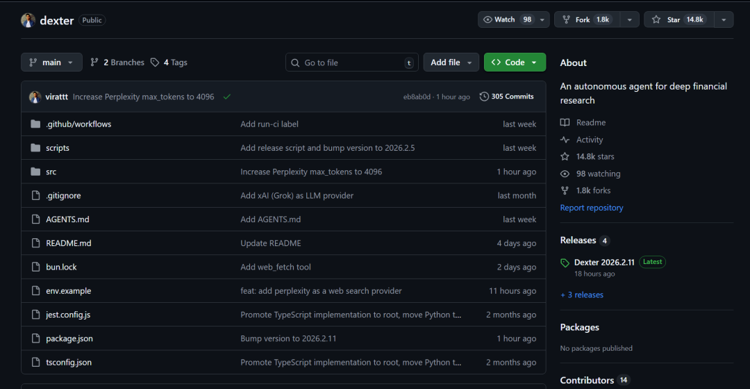 Dexter is a typical example. It does not try to cover all fields, but focuses on financial research, deepening data sources, analysis processes, and verification mechanisms.Project address: https://github.com/virattt/dexter