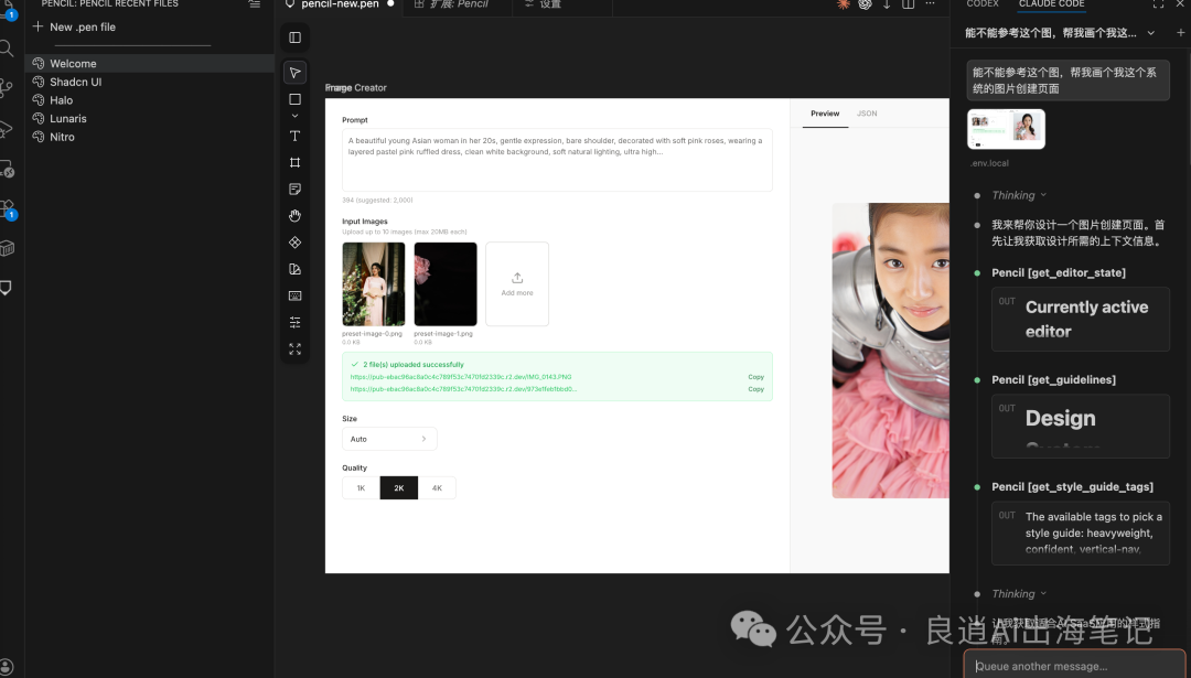 Pencil has a design system and aesthetic standards behind it, and the quality of the generated design drafts is relatively stable. Although it may not be perfect, it is at least not too ugly.
