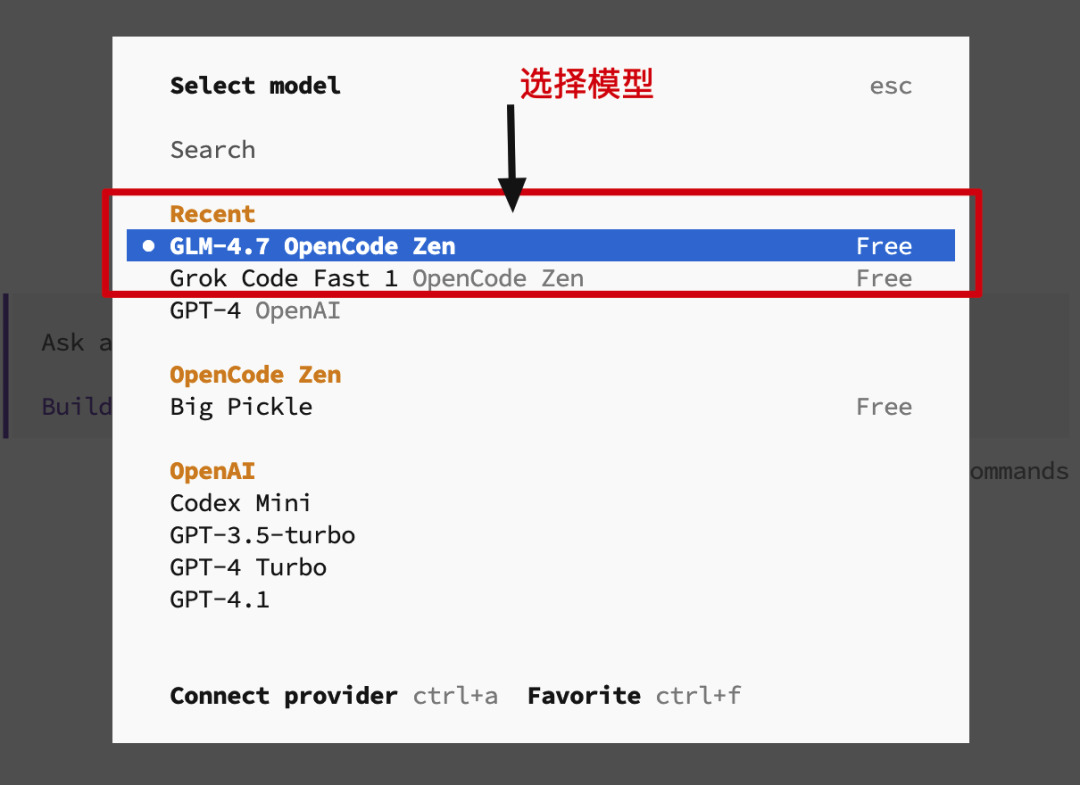 opencode provides some free models by default, you can enter