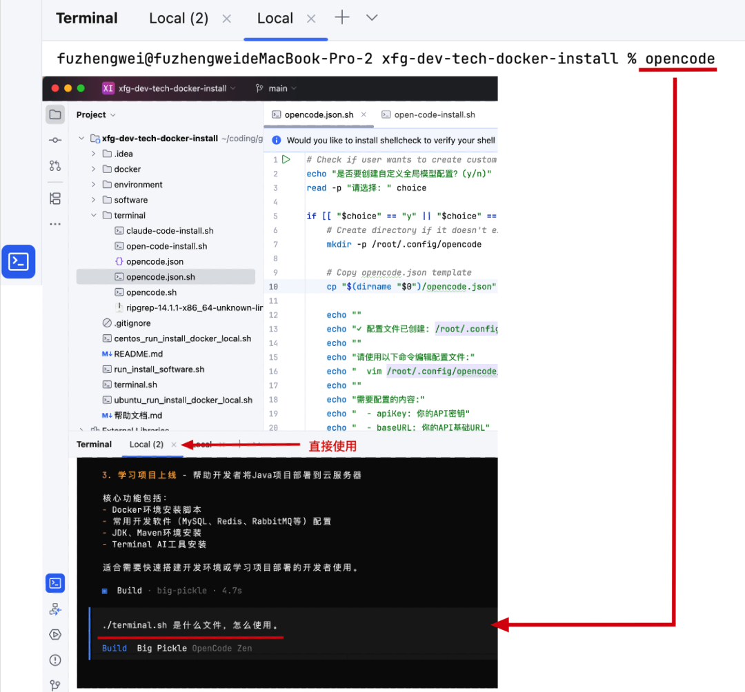 Especially for many partners who get a project and don't know what's inside or what the script does, you can use opencode to help you solve it.