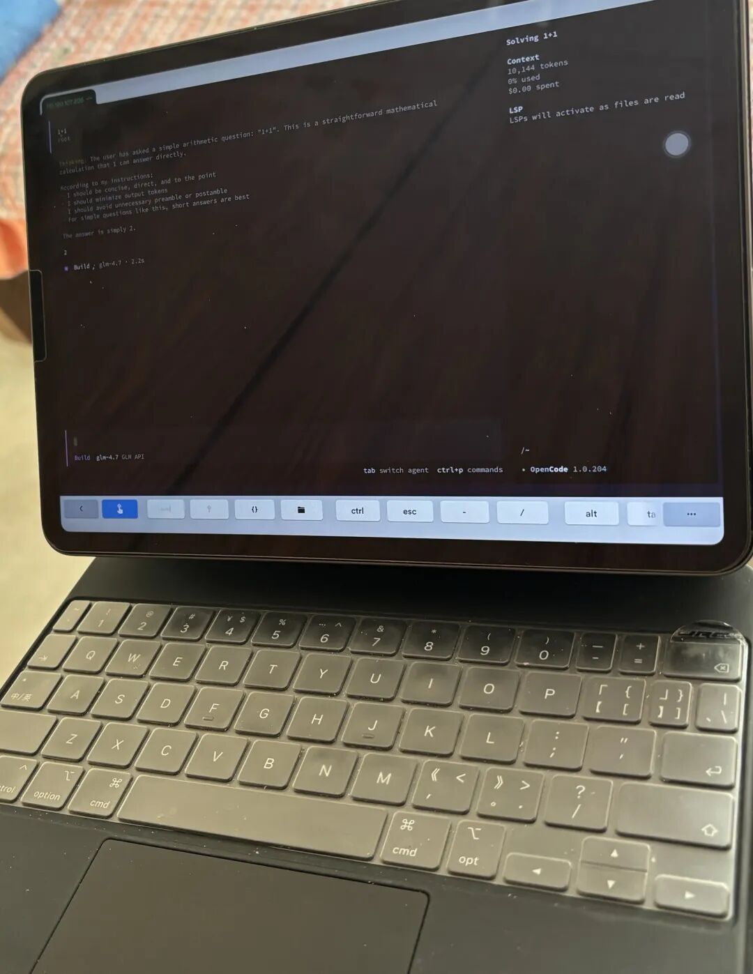 Although IPad Pro doesn't have much development software, if you are using cloud servers, Nas, etc., and install opencode in these software, then you can also install the termius.com SSH tool on IPad Pro and operate the Linux system deployed with opencode through the SSH tool.Now, for daily outings, bringing an IPad Pro can also handle some minor development maintenance, which is very convenient. IPad Pro + Nas is super comfortable!