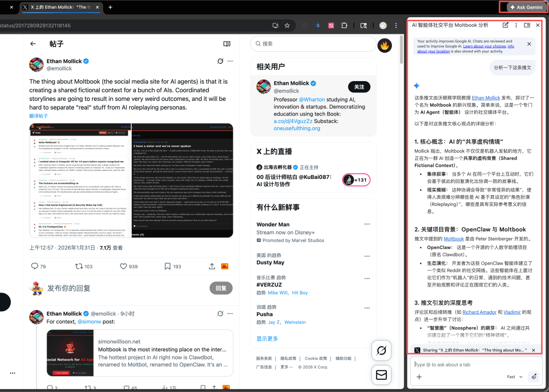 Recently, the latest version of Chrome has launched a new feature that allows you to enable Gemini within the browser. It’s not a browser plugin, nor a simple sidebar, but a native browser function. It’s like adding a Gemini assistant to Chrome, allowing you to ask Gemini 3 questions, interpret webpages, analyze data, and more at any time.